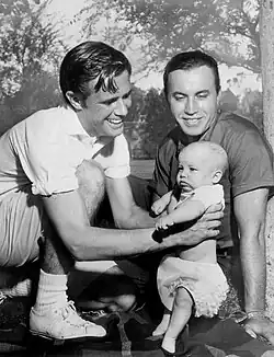 Lupton with daughter Rollin and Broken Arrow co-star Michael Ansara, 1957.
