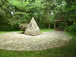 A marker was erected at the home site by the Marshall chapter of the Phi Delta Phi legal fraternity at George Washington University in 1902. That marker was enclosed by a larger monument in 1928. John Marshall Birthplace Park was Fauquier County's first public park.[1] The 6-acre (2.4 ha) park was dedicated on June 8, 1978.[6]