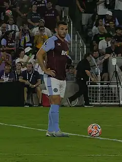 He signed a new four-year contract with Villa in June 2023.[47] On 5 October 2023, he scored the winning goal from a header in the 94th minute of stoppage time in a 1–0 victory over Zrinjski Mostar during the 2023–24 Conference League group stage, to be his club's first ever win in the competition.[48]