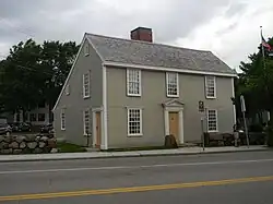 The house is a 2+12 story wood frame saltbox style house, sheathed in wooden clapboards. There are two main rooms, one on either side of a central chimney, on each of the two floors, and there are two further rooms in the lean-to section on the first floor. The main facade is three bays wide with the entry in the center. The doorway is framed by pilasters and topped by an entablature and triangular pediment. A similarly treated entrance is located at the southeast corner of the building.[3]