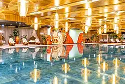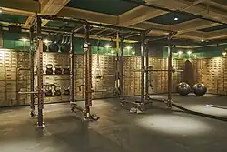 Some studio locations are housed in historically relevant buildings. In Salzburg, Austria, a former cinema was converted to retain many old features.[39] Cardio training, for example, takes place in front of the big cinema screen. In Vienna-Schottentor, the John Reed Fitness Music Club is located on 5,000 m2 in a former bank building that is a listed building.[40] The meter-thick walls and armored doors remained here, as did the vault in which the weight benches were housed. In Hanover, John Reed Fitness Music Club has converted the former main freight station into a fitness studio. Many elements were left in the industrial style or designed in the shabby chic style in order to maintain the atmosphere of the station.[41] The largest German studio opened in Berlin in September 2023 in the vaulted cellars of the former Bötzow brewery.[42] Here too, the architectural conditions were integrated into the design.[43] Under seven-meter-high vaulted ceilings, there are now individual relaxation areas in the old coolships of the beer brewery.[44]
