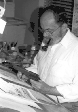 I had decided to exhibit some paintings of mine in a High School of Music and Art exhibition for the alumni. Charlie Stern was in charge of it, so I went to see him at his studio. He was the "Charles" of the Charles William Harvey Studio, the other two being William Elder and Harvey Kurtzman. They asked me if I'd like to rent space with them there. I did, and started working with them. When Charlie left ... I became the third man, but they didn't want to change it to John William Harvey Studio, so they left the name ... Harvey was doing comics, Willie and Charlie were doing advertising stuff, and I just joined in ... [I did] design work, logos for toy boxes, logos for candy boxes, cards to be included in the candy boxes.[8]