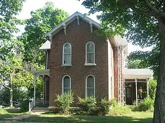 John W. Smith House, also known as the Roberta Nicholson House, is a historic home located at Rochester, Fulton County, Indiana. It was built in 1892, and is a 2+12-story, Neo-Jacobean style frame dwelling on a limestone block foundation. It features a projecting round tower, wraparound porch, and 75 windows of various sizes.[2]: 2