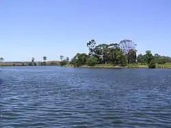 Sarsfield Storage Basin is a 160 ML earthen, rock beached storage. Water harvested from the Mitchell River at Glenaladale is transferred to this storage and used to supply the townships of Sarsfield, Bruthen, Nicholson, Johnsonville, Swan Reach, Metung, and Lakes Entrance. The water is disinfected using chlorine gas at the outlet of the storage.[14]