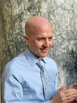 ![]() Jonathan Kreiss-Tomkins in front of the Alaska State Capitol in February 2020 | |