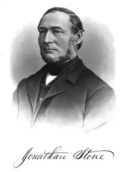 - ^ The New York Times (November 27, 1897), "DEATH LIST OF A DAY. Obituary Notes. Jonathan Stone", The New York Times, New York, NY, p. 7