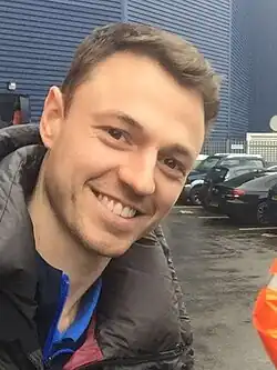On 28 May 2016, Evans was included by national team manager Michael O'Neill in Northern Ireland's final 23-man squad for UEFA Euro 2016.[63] This was the first time Northern Ireland had ever been involved in the finals of the competition, and their first major tournament since the 1986 FIFA World Cup. The team eventually reached the last 16, being knocked out by Wales after a 1–0 defeat.[64] Evans participated in all four of Northern Ireland's games in the tournament.[9]