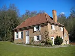 The farm name seems to date back to the late Middle Ages. Its known history begins in 1618 when Thomas Russell bought it. Part of the present farmhouse was already there and Thomas Russell added to it in 1624, also building a substantial new barn with timbers from a ship. Despite suppositions, it cannot be shown that they came from the Mayflower, the ship that carried the Pilgrim Fathers from Plymouth to New England.[3][4]