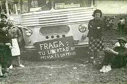 The year of 1968 marked a fundamental change in Carlist stand versus Francoism; with expulsion of Carlos Hugo from Spain the policy of cautiously courting the regime crashed, and from this moment the party adopted an openly hostile and increasingly radical left-wing course. The same year Zavala launched a campaign of cursillos,[106] party-organized classes supposed to educate a new generation of leaders; they advanced socially radical message which combined Marxism, gauchisme and monarchism.[107] The courses were parallel to launch of Información Mensual,[108] a semi-legal bulletin which Zavala personally edited[109] until the late 1970s;[110] other formative and radically left-wing bulletins were cured by his collaborators.[111] The official monthly Montejurra was closed by the authorities in 1971, as its openly anti-Francoist course was considered off-limits by censorship.[112] However, there were limits to radicalization;[113] Zavala condemned the activity of GAC, a terrorist Carlist group which emerged beyond the official party structures.[114]