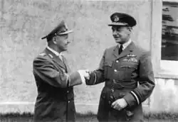 Meeting between Kammhuber and Air Marshal Sir Thomas Pike in 1956. Pike had previously served as an RAF night fighter pilot.