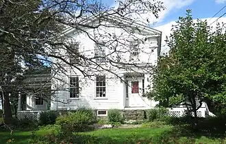 It was built in the 1850s and is a two-story, three-bay wide frame building on a random-coursed stone foundation in a constructed vernacular Greek Revival style. It has a gabled roof, flanking one-story wings, and a 1+1⁄2-story rear wing. Also on the property is a contributing carriage house.[2]