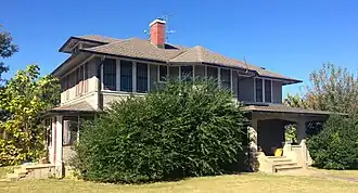A 2+1⁄2-story structure, it features a hipped roof with a combination of stucco and wood clapboard siding for the exterior walls. A single story hipped-roof porch runs across the front of the home. The building possesses a multitude of other prairie-style elements and retains a high degree of architectural integrity. It was listed in the National Register of Historic Places on September 26, 1986, as NR ID Number 86002346.[4]