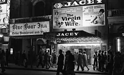In 1960, Jacey acquired news theatres at seven central London sites by buying the Monsigneur chain.[1] Jacey also operated in Edinburgh and Brighton.[6] Cohen's Birmingham news theatres had their own film crew, to record local events, led by his son, George.[1] As competition from television increased, and audiences declined, the chain – with George now on the management team – diversified into showing continental art films, and then nudist and eventually soft porn titles, before two cinemas were converted, one into an antiques centre, the other a market for philatelic dealers.[6][2] The remaining cinemas were sold off, and the company voluntarily liquidated, shortly after Cohen's death.[6]