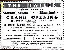 4. ^ "The Pioneers of Provincial News Theaters: The Romance of a Birmingham Enterprise". Birmingham Gazette. No. Centenary Supplement. 9 April 1979.