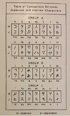 Comparison between Japanese and Hebrew letters