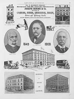 The Joseph Horne Company, often referred to simply as Joseph Horne's or Horne's, was an American department store chain based in Pittsburgh, Pennsylvania. The store was one of the oldest in the country being founded on February 22, 1849, but was often overlooked as it maintained only a regional presence.[1] The chain ceased operations in 1994 after being merged with the Lazarus division of Federated Department Stores.