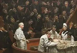 Before Lister's studies of surgery, many people believed that chemical damage from exposure to "bad air", or miasma, was responsible for infections in wounds.[93] Hospital wards were occasionally aired out at midday as a precaution against the spread of infection via miasma, but facilities for washing hands or a patient's wounds were not available. A surgeon was not required to wash his hands before seeing a patient; in the absence of any theory of bacterial infection, such practices were not considered necessary. Despite the work of Ignaz Semmelweis and Oliver Wendell Holmes Sr., hospitals practised surgery under unsanitary conditions. Surgeons of the time referred to the "good old surgical stink" and took pride in the stains on their unwashed operating gowns as a display of their experience.[94]