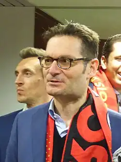 In May 2016, Oughourlian, who ran an ad hoc fund called Solferino, was preferred to two competing offers to buy the football club Racing Club de Lens,[21] in a very delicate financial situation after five consecutive seasons in Ligue 2. His objective was to bring and stabilize the club in Ligue 1. But after a first season where Lens was very close to the rise, the second saw the team sinking into the bottom of the L2 classification. In December 2017 he became the sole shareholder, after the buyout of the minority stake held by Atlético Madrid,[22] and the June 16, 2018, chairman of the board of directors.[23] In 2019, Oughourlian recovered the club financially, reducing its losses from 17 million euros to 3 million,[24] improving its management, assisted by a general manager, Arnaud Pouille.[24] Oughourlian claimed a policy of accessible prices for supporters, with whom he evoked a “contract”: “Low prices will stay low”.[24] He declared in December 2019 that "his secret dream is to bring Europe back to Bollaert",[24] while Lens was still in Ligue 2. Accession to L1 will be obtained at the end of the 2019–2020 season, cut short by the Covid-19 pandemic. In July 2020, he became president of the new women's Racing Club de Lens.