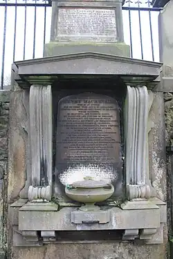 He died on 17 November 1851. He is buried with his parents in Greyfriars Kirkyard. The grave lies against the retaining wall mid-way along the northern slope.