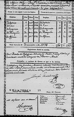 In 1785 he was appointed as a military commander in Minas, Uruguay, a position he held until 1790.[6] He served in the veteran corps of the Regimiento de Voluntarios de Córdoba during the English Invasions of the Río de la Plata.[7] After the May Revolution he went on to serve under the orders of the Primera Junta, supporting the emancipatory cause until his death.[8]