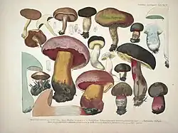 In addition to his career in medicine, Krombholz had a keen interest in mycology. He performed numerous experiments involving the toxicity of mushrooms. He is known for Naturgetreue Abbildungen und Beschreibungen der essbaren, schädlichen und verdächtigen Schwämme (1831–1846), a publication on mushrooms that was based on his own observations. It is acclaimed for its true-to-nature pictures and its descriptions of edible, harmful and suspect mushrooms. Krombholz died before its completion, and latter parts of the work were edited by Johann Baptista Zobel (1812–1865).[3] Other noted works by Krombholz include: