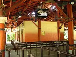 Development of the ride began in late 1990,[2][15] before the film began shooting.[14] The possibility of a Jurassic Park ride was publicly noted in 1992, but was contingent on the performance of the upcoming film,[16][17] which went on to become a commercial success.[14] Groundbreaking for the ride took place on January 1, 1995.[2] The ride was originally budgeted at $67 million,[14] but this figure ultimately grew to $110 million,[18] more than the film it was based upon.[19][14] It was the most expensive theme park attraction built up to that point, beating out Indiana Jones Adventure: Temple of the Forbidden Eye at Disneyland.[20] A pterosaur aviary was planned as part of the ride, but was scrapped due to budget constraints.[14]