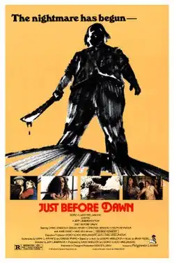Just Before Dawn is a 1981 American slasher film directed by Jeff Lieberman and starring Chris Lemmon, Gregg Henry, Deborah Benson, Ralph Seymour, Jamie Rose, and George Kennedy. The film follows a group of hikers who travel into a mountainous region of Oregon to visit property inherited by one of them, only to be hunted by a ruthless backwoods killer.