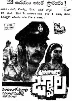 Jwala (transl. Volcano) is a 1985 Indian Telugu-language film, directed by Ravi Raja Pinisetty. The film stars Chiranjeevi in a dual role, Radhika, Bhanupriya and Kannada Prabhakar. The film's music was composed by Ilaiyaraaja. The film was dubbed in Malayalam as Prathikara Jwala.[1][2][3] The film was remade in Kannada in 1987 as Sathyam Shivam Sundaram starring Vishnuvardhan in triple roles ( including the role of the father) unlike in Jwala.