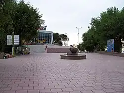 The Fountain of Desires in the form of granite apple, the symbol of Almaty, welcomes guests at Kok Tobe Peak. Some people throw coins into the depths of its waters, while others take photos near it.