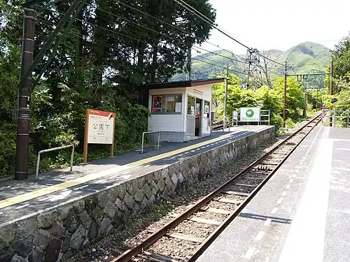 Kōen-Shimo Station (公園下駅, Kōen-Shimo-eki) is a funicular railway station on the Hakone Tozan Cable Car in the town of Hakone, Ashigarashimo District, Kanagawa Prefecture, Japan. It is 0.24 rail kilometers from the Hakone Tozan Cable Car Line's terminus at Gōra Station.