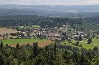 The Křemešník Highlands is a mesoregion of the Bohemian-Moravian Highlands within the Bohemian Massif. Mild and rather elongated ridges predominate.[1] The relief is monotonous, disturbed only by deep valleys of watercourses. The highlands are further subdivided into the microregions of Jindřichův Hradec Uplands, Pacov Uplands, Želiv Uplands and Humpolec Highlands.[2]