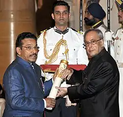 He is a recipient of the Lifetime Achievement Award from the British South India Council of Commerce (2014)[5][6] and the Dr. Balsalam Memorial Award.[7] He was honoured by the Government of India in 2015 with Padma Shri, the fourth-highest civilian Indian award.[8]
