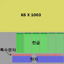 KS X 1001, "Code for Information Interchange (Hangul and Hanja)",[d][1] formerly called KS C 5601, is a South Korean coded character set standard to represent Hangul and Hanja characters on a computer.