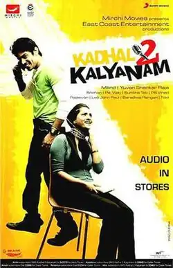 Kadhal 2 Kalyanam (transl. Love to Marriage) is an unreleased Tamil-language romantic comedy film directed by newcomer Milind Rau that stars debutante Sathya, brother of Tamil actor Arya, and Ramya, whilst, Jayashree, Nagendra Prasad, Kasthuri and Anuja Iyer play pivotal roles.[1] Noted film critic Baradwaj Rangan had written the dialogues, while Yuvan Shankar Raja composed the film's score and soundtrack. The cinematography and editing were handled by P. S. Vinod and Leo John Paul, respectively. Pre-production works began by mid-2008, while the filming continued for over one year, being completed by July 2010. The film was jointly produced by Mirchi Movies and East Coast Entertainment, who are now not in the film-making business.[2] Hence the movie remains unreleased.