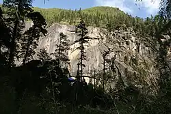 Kading Valley (Chinese: 卡定沟, Tibetan: ག་དིང་), located 24 km northeast of Bayi Town in Nyingchi, Tibet Autonomous Region, is a protected geological area within the Nyang River basin at 2,980 meters elevation.[1][2] Characterized by its steep Jurassic-era sandstone cliffs and a 198-meter cascading waterfall (locally termed "Celestial Buddha Waterfall"), the valley features rare tectonic formations including natural bas-reliefs resembling Guanyin, Sakyamuni, and Tibetan Buddhist deities formed through differential erosion.[3]