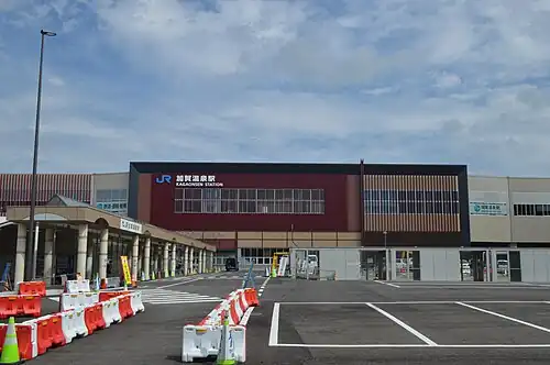Kagaonsen Station is served by the IR Ishikawa Railway Line. It became a station on the Hokuriku Shinkansen when the extension of that line west of Kanazawa opened on 16 March 2024.[1]