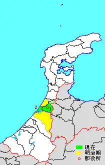 Map showing original extent of Kahoku District in Ishikawa Prefecture: