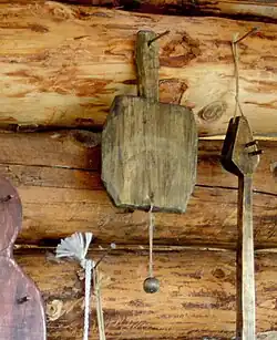 A variant of the torokhkalo is the klepach that consists of a wooden hammer on an axis which is swung from one side to the other.