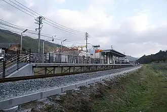 The railway station consisted of one side platform serving a single track. The station was unattended.[2] After the discontinuation of train service, equipment attached to the railway station will be removed, and the platform and surrounding railway tracks was removed.