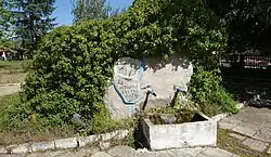 A fountain in the center of the village of Kapatovo with the inscription "To leave a light trail"