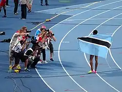 Karabo Sibanda (born 2 July 1998) is a sprinter from Botswana specialising in the 400 metres.[1] Originally a junior chess player, after he saw Usain Bolt competing at the 2012 London Olympic Games he got so inspired by his performance, that he decided to be an athlete. He won two medals at the 2016 African Championships as well as multiple age group medals. He competed at the 2016 Summer Olympics, finishing fifth in the 400 metres final as barely an 18 year old in a still personal best of 44.25.[2]