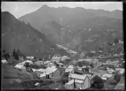 "Settlement of Karangahake" including gold mining buildings in centre, circa 1916