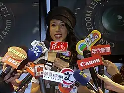 Mok being interviewed in 2007 at a Canon event in Taipei .