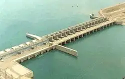 Karkamış Dam is one of the 21 dams of the Southeastern Anatolia Project of Turkey. It is on the Euphrates River.[1] The foundation of the dam was laid in 1996, and is 4.5 kilometres (2.8 mi) from the Syria border.[2] The hydroelectric power plant has a total installed power capacity of 189 megawatts (253,000 hp).[3]