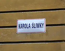 Plaque of street in Karviná-Fryštát bearing Śliwka's name