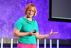 Karoli Hindriks (born 1983)[1] is an Estonian entrepreneur who in 2014 founded the relocation technology company Jobbatical which she heads as CEO.[2][3] In 1999, when only 16, she started a student company which made fabric soft reflectors for pedestrians and in 2007 was appointed CEO of the television station MTV Estonia.[4][5][6]