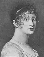 Baroness Karoline Jagemann von Heygendorff (25 January 1777, in Weimar – 10 July 1848, in Dresden) was a major German tragedienne and singer. Her great roles included Elizabeth in Mary Stuart (1800) and Beatrice in The Bride of Messina (1803). She is also notable as a mistress of Karl August, Grand Duke of Saxe-Weimar-Eisenach, the father of her three children. Both she and Karl August had their portraits painted by Heinrich Christoph Kolbe.