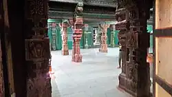 As per another legend, the Pandavas from Mahabharatha were living in exile and were roaming around the forest of Western Ghats. They could not get water for performing their daily pooja. As Sun was rising, Arjuna, one of the princes, prayed to Ganga to send water to the place and shot an arrow that split earth and brought forth a river. The river that originated is believed to be the Arjuna river in modern times.[2] The place where the temple was located was believed to be housing two Amla trees (called nelli in Tamil) and hence got the name as Irunellinathar, which later went on to become Karunellinathar.[3]
