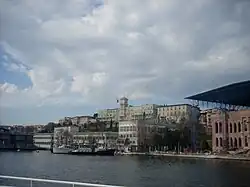 Kasımpaşa quarter of the Beyoğlu district in Istanbul, along the northern shoreline of the Golden Horn, with the buildings of the Ottoman Ministry of the Navy (right) and the Ottoman Naval Hospital (center), which are currently used by the Turkish Navy.