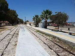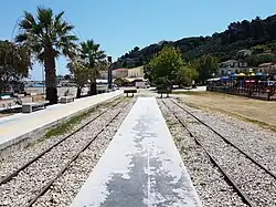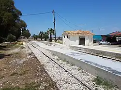 Katakolo railway station (Greek: Σιδηροδρομικός Σταθμός Κατακόλου, romanizedSidirodromikós stathmós Katakolo) is a railway station that serves the town of Katakolo, Elis in Western Greece, Greece. Located in the centre of Katakolo, close to the harbour and ferry port, the station was opened in 1882 by the Pyrgos-Katakolo Railway Company (SPK), (now part of OSE). Today TrainOSE operates 3 scheduled daily Regional trains[3] to Olympia, via Pyrgos.[4][5] The station is unstaffed[6] however there are waiting rooms available. It was the most western active station on the OSE network.